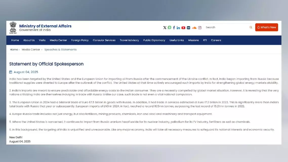 In response to Trump's new threat, India's Ministry of External Affairs said in a statement that "the targeting of India is unjustified and unreasonable," and that India's oil imports are meant to "ensure predictable and affordable energy costs" for Indian consumers.