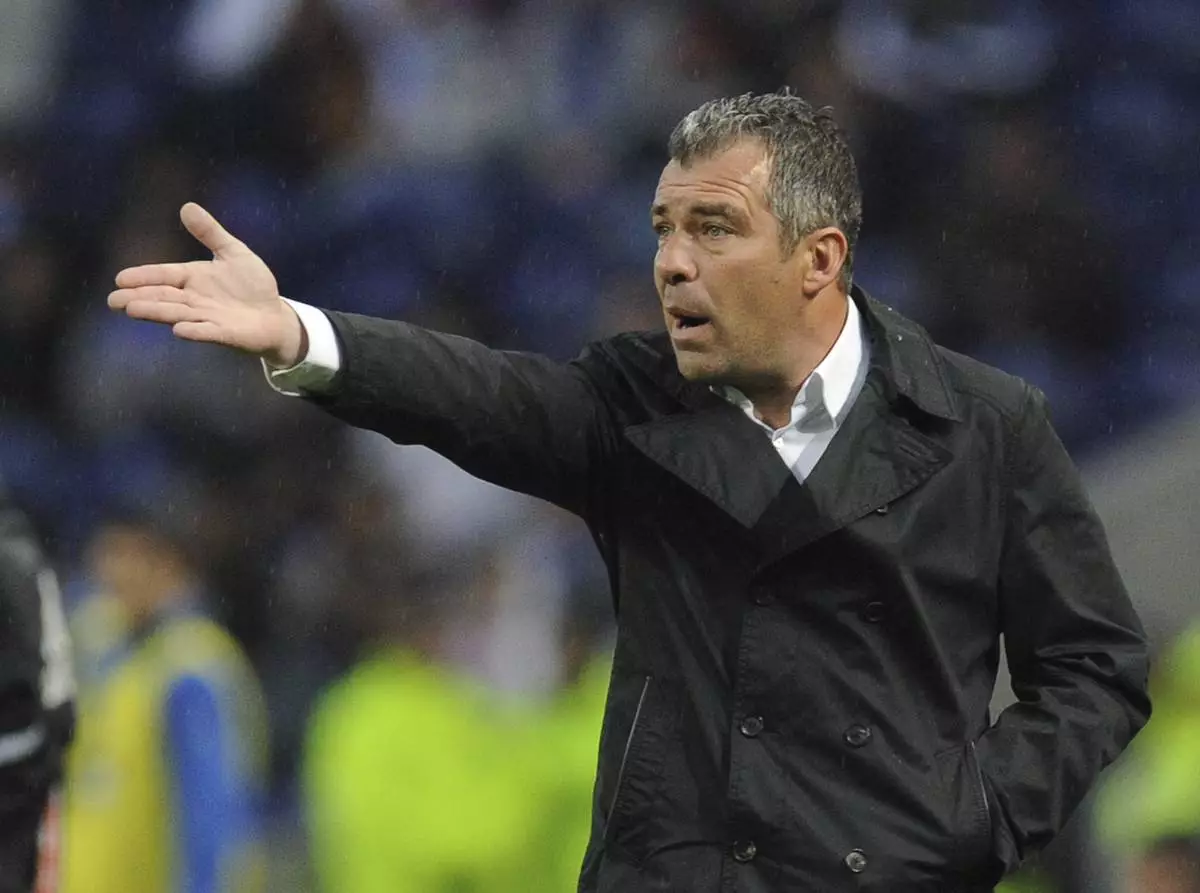 FILE - Olhanense's coach Jorge Costa reacts, during a Portuguese League soccer match against FC Porto at Porto's Dragon Stadium in Porto, Portugal, Saturday, March 6, 2010. (AP Photo/Paulo Duarte, File)