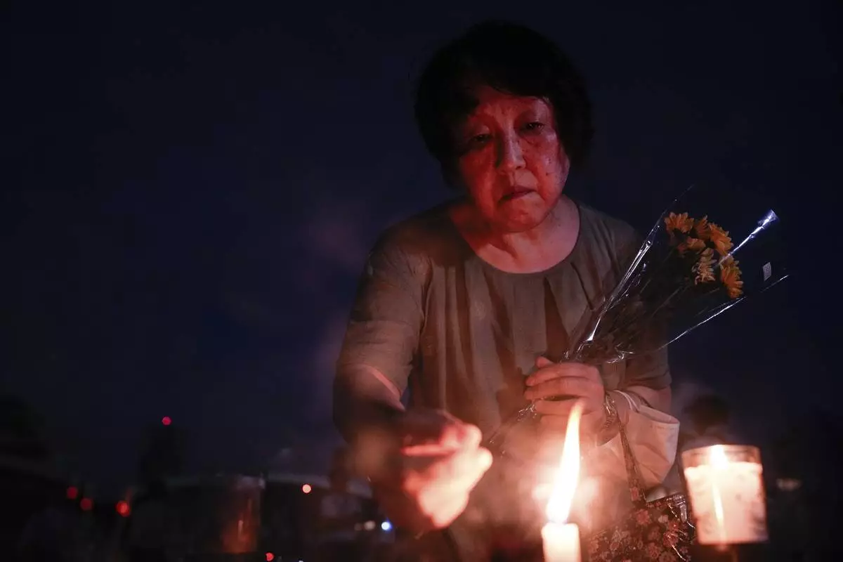 A visitor lights incense sticks at the Peace Memorial Park ahead of the memorial service to mark the 80th anniversary of the WWII U.S. atomic bombing in Hiroshima, Wednesday, Aug. 6, 2025, in Japan. (AP Photo/Louise Delmotte)