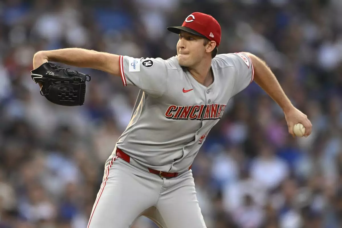 Cincinnati Reds starter Nick Lodolo delivers a pitch during the first inning of a baseball game against the Chicago Cubs Monday, Aug. 4, 2025, in Chicago. (AP Photo/Paul Beaty)
