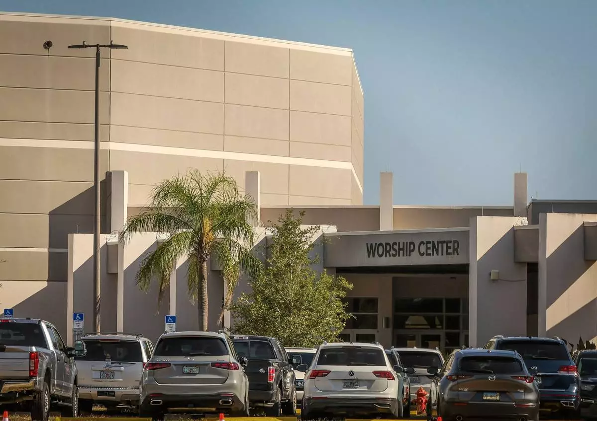 The exterior of Indian Rocks Baptist Church where Terry Bollea's, better known as wrester Hulk Hogan, funeral services were held, Tuesday, Aug. 5, 2025 in Largo, Fla. (Luis Santana/Tampa Bay Times via AP)