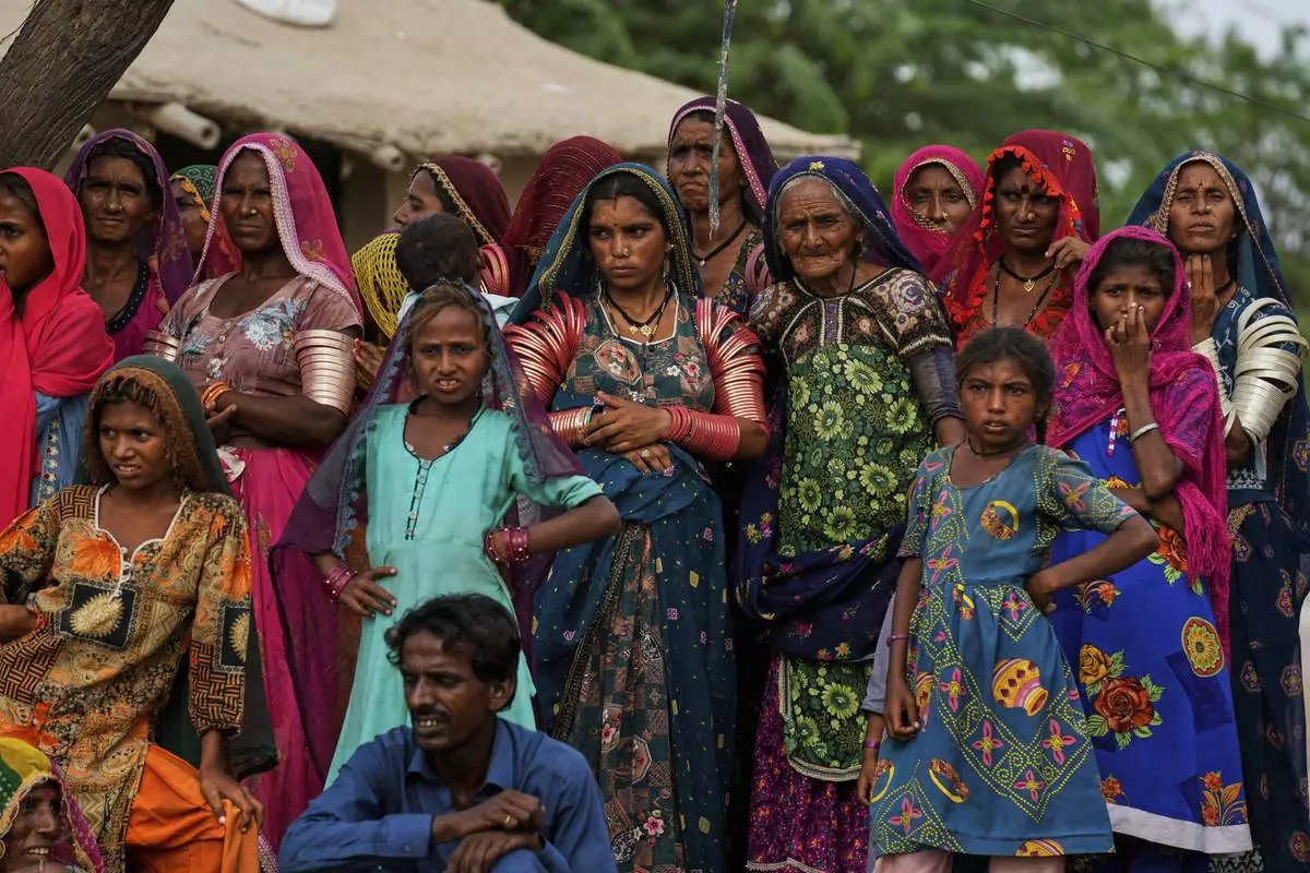 Women prepare to leave after the performance of a Pakistani folk musician Sham Bhai at a village in Umerkot, a district of Pakistan's southeastern Sindh province, Thursday, July 17, 2025. (AP Photo/Fareed Khan)