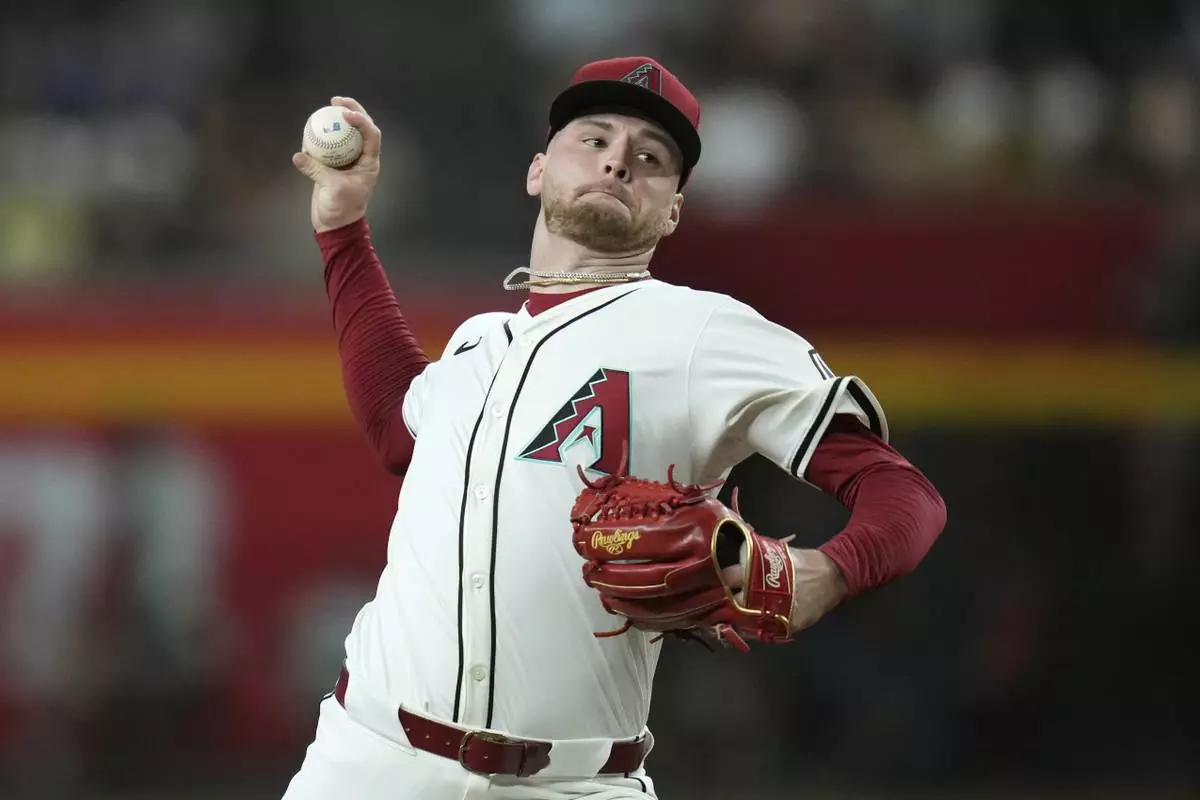 Arizona Diamondbacks starting pitcher Ryne Nelson throws against the San Diego Padres during the first inning of a baseball game Tuesday, Aug. 5, 2025, in Phoenix. (AP Photo/Ross D. Franklin)
