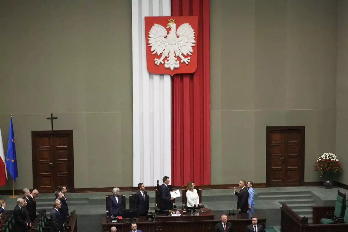 Welcomed to the Sejm, Poland’s parliament, by uproarious chants of “Karol, Karol” and rhythmic clapping Wednesday, Nawrocki raised his right hand and took the oath of office to kick off a five-year term.