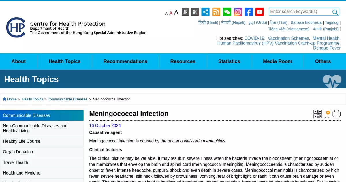 The public may visit the CHP's websitefor more information on meningococcal infection.