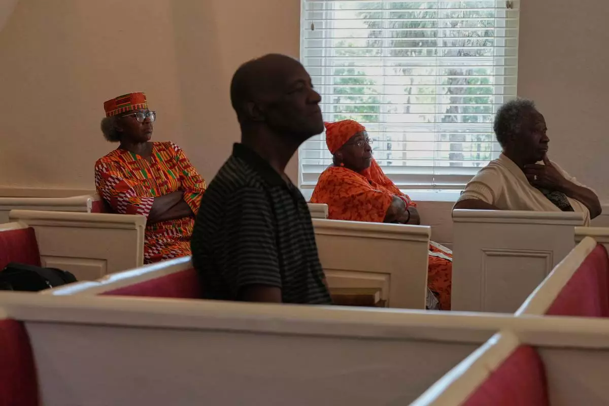 Concertgoers listen to Gullah spirituals at the Brick Baptist Church in St. Helena Island, Saturday, July 19, 2025. (AP Photo/Luis Andres Henao)