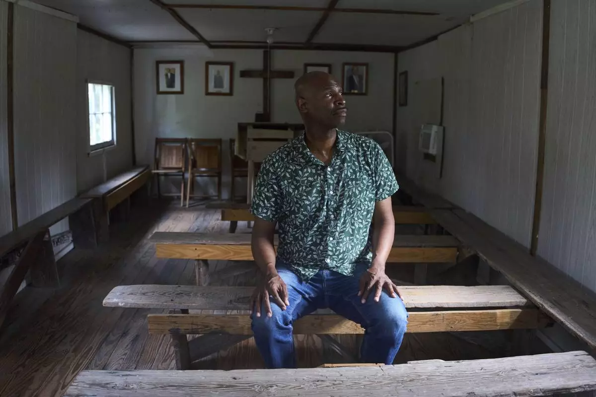 Eric Crawford, author of "Gullah Spirituals: The Sound of Freedom and Protest in the South Carolina Sea Islands," poses for a photo at the Mary Jenkins Praise House in St. Helena Island, Sunday, July 20, 2025. (AP Photo/Luis Andres Henao)