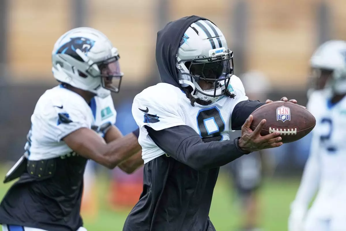 Carolina Panthers cornerback Jaycee Horn participates during an NFL football training camp, Wednesday, July 30, 2025, in Charlotte, N.C. (AP Photo/Chris Carlson)