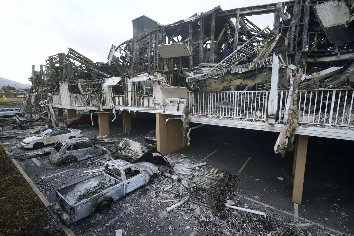 FILE - Damage from wildfires is seen in Lahaina, Hawaii, on Aug. 11, 2023 . (AP Photo/Rick Bowmer, File)
