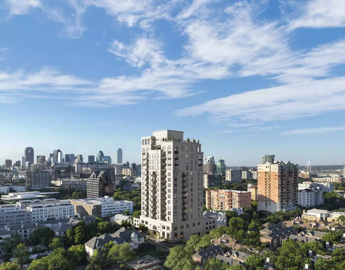 The 18-story development will feature 33 ultra-luxury condominiums ranging from 2,000 to 6,380 square feet, offering unparalleled views of the Dallas skyline and the scenic Turtle Creek neighborhood. In addition to a rooftop oasis and infinity pool, the project also offers a host of hospitality-focused amenities, including a private garden, private dining room, secure dog park and pet spa.
