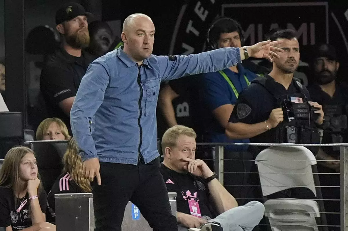 FILE - New York City FC head coach Nick Cushing gestures during the second half of an MLS soccer match against the Inter Miami, Saturday, March 30, 2024, in Fort Lauderdale, Fla. (AP Photo/Marta Lavandier, File)