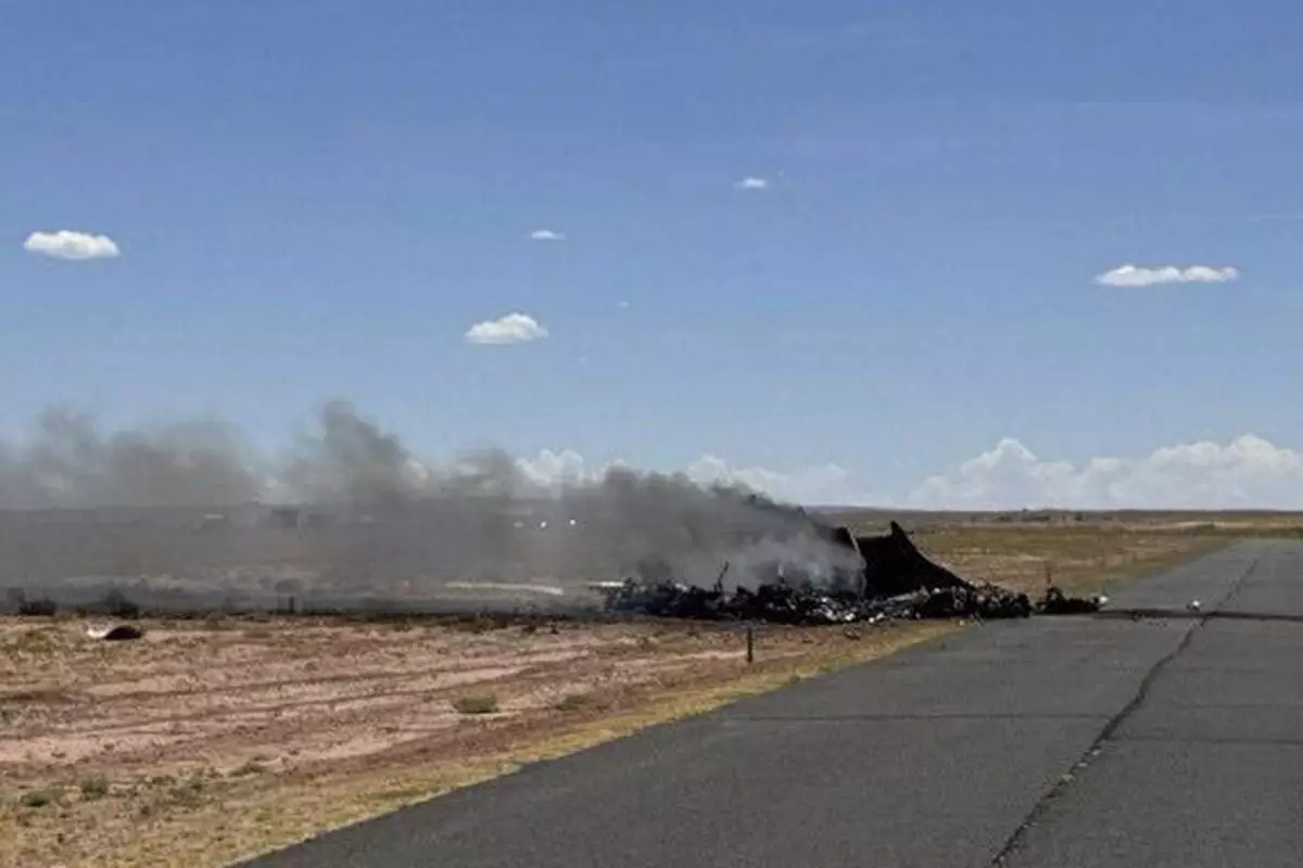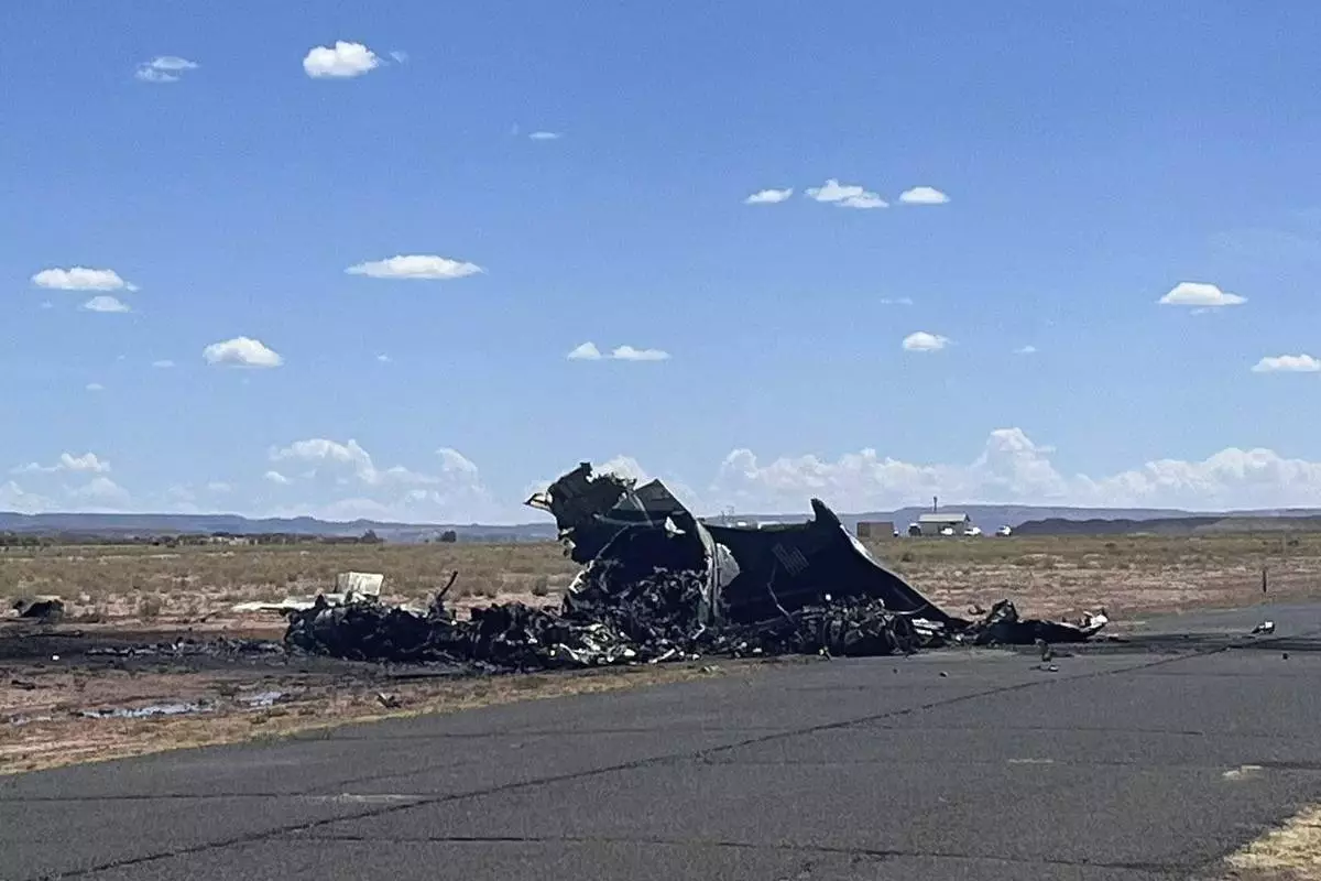 This image released by the Navajo Nation Police Department shows a medical transport plane after it crashed near the airport in Chinle, Ariz., on Tuesday, Aug. 5, 2025. (Navajo Nation Police Department)