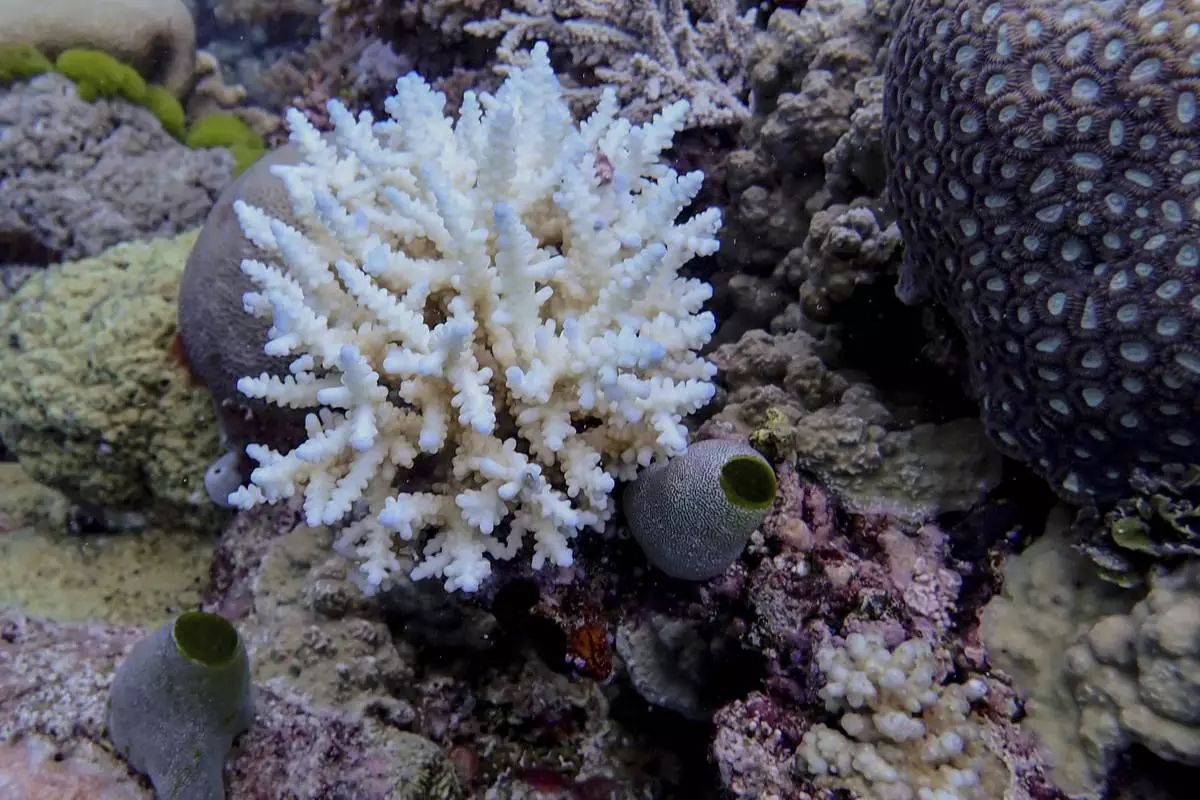 Minor bleaching is seen to a Acropora colony at Lagoon Reef at the northern Great Barrier Reef in far North Queensland, Australia, Dec. 18, 2024. (Australian Institute of Marine Science via AP)