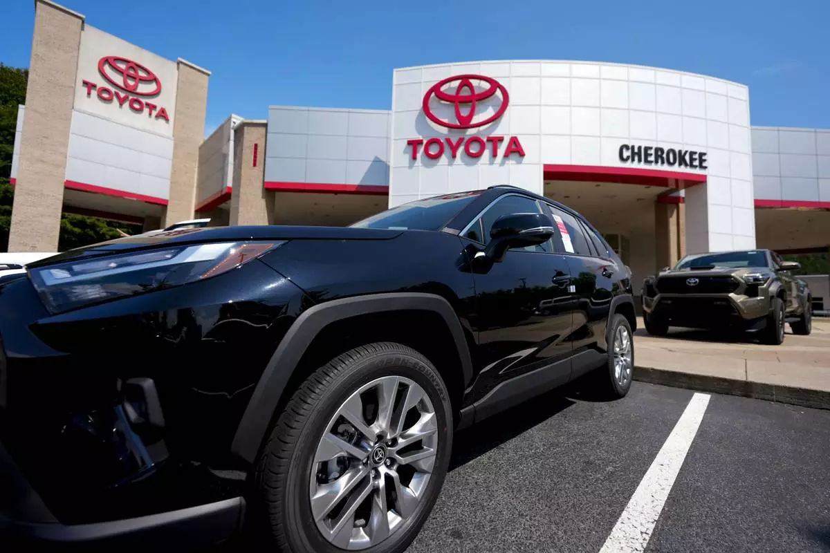New Toyota vehicles are seen, Friday, Aug. 1, 2025, in Canton, Ga. (AP Photo/Mike Stewart)