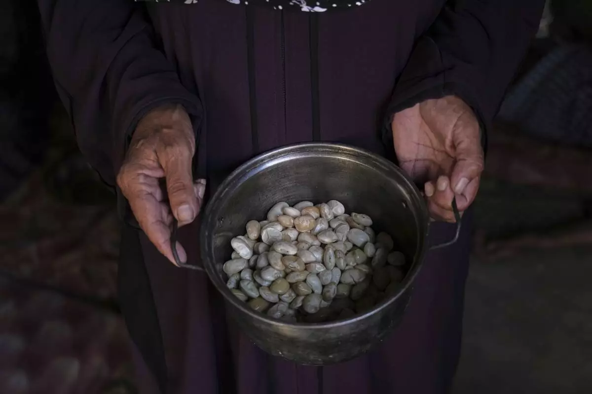 DEIR AL-BALAH, Gaza Strip (AP) — A single bowl of eggplant stewed in watery tomato juice must sustain Sally Muzhed’s family of six for the day. She calls it moussaka, but it’s a pale echo of the fragrant, layered meat-and-vegetable dish that once filled Gaza’s kitchens with its aroma.