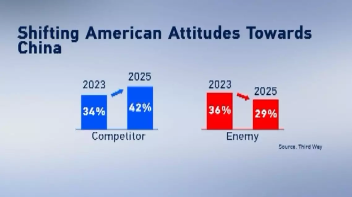 More Americans now view China as a competitor rather than an enemy, according to a private survey conducted by Third Way, a U.S. national think tank.