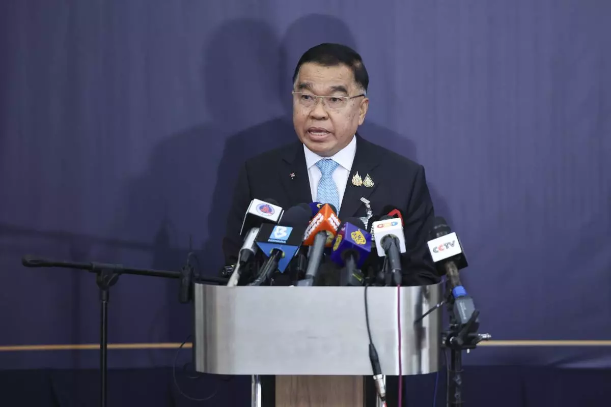 Thai Deputy Defence Minister Nattaphon Narkphanit speaks at a news conference after a meeting of the Extraordinary General Border Committee (GBC) to discuss the border dispute between Thailand and Cambodian, in Kuala Lumpur, Malaysia, Thursday, Aug. 7, 2025. (Hasnoor Hussain/Pool Photo via AP)