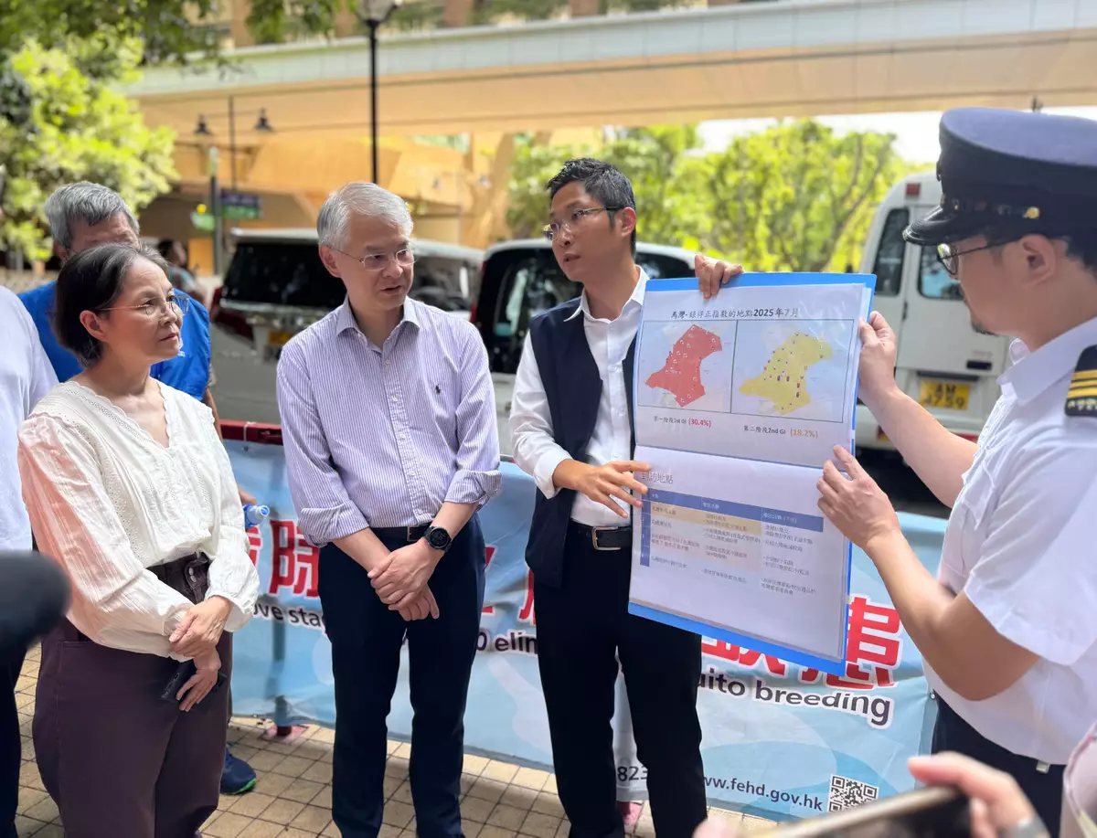 Two of the imported cases announced yesterday travelled to Bangladesh and developed symptoms there. They returned to Hong Kong on August 3. Both patients live in Kwai Tsing District. The survey area in Tsing Yi North, where their residence is located, recorded a gravidtrap index for Aedes albopictus mosquitoes of 15.5 per cent in July this year, which is at Level 2 alert level, indicating a fairly extensive distribution of Aedes albopictus mosquitoes. In response to the imported cases, the FEHD has immediately commenced vector investigations and targeted mosquito control within 250-metre radius of their residence. Measures include removing mosquito breeding grounds, applying larvicides to stagnant water that cannot be cleared, and conducting ultra-low volume fogging operations in adult mosquito habitats such as densely wooded areas, dark and secluded places, and abandoned structures to eliminate adult mosquitoes. In addition, the FEHD, jointly with other stakeholders including the Housing Department, District Council members, Community Care Teams and property management companies, held a health talk this morning to answer the residents' enquiries.