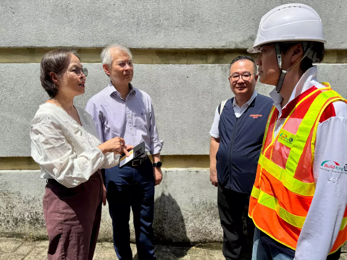 To ensure effective implementation of measures reducing the risk of transmission of chikungunya fever (CF), the Environment and Ecology Bureau (EEB) and the Food and Environmental Hygiene Department (FEHD), together with relevant government departments and stakeholders, continue to strengthen efforts in mosquito control and elimination, publicity and education. In response to the imported CF cases announced yesterday (August 6), the Acting Secretary for Environment and Ecology, Miss Diane Wong, and Assistant Director of the FEHD Mr Peter Poon today (August 7) visited several places, including the area outside of Mount Haven in Tsing Yi North, Kwai Tsing District, to review the immediate response measures in the area to reduce the risk of secondary spread of CF. They also visited Ma Wan in Tsuen Wan District to learn more about the specific follow-up actions of various government departments and stakeholders to mitigate mosquito infestation.