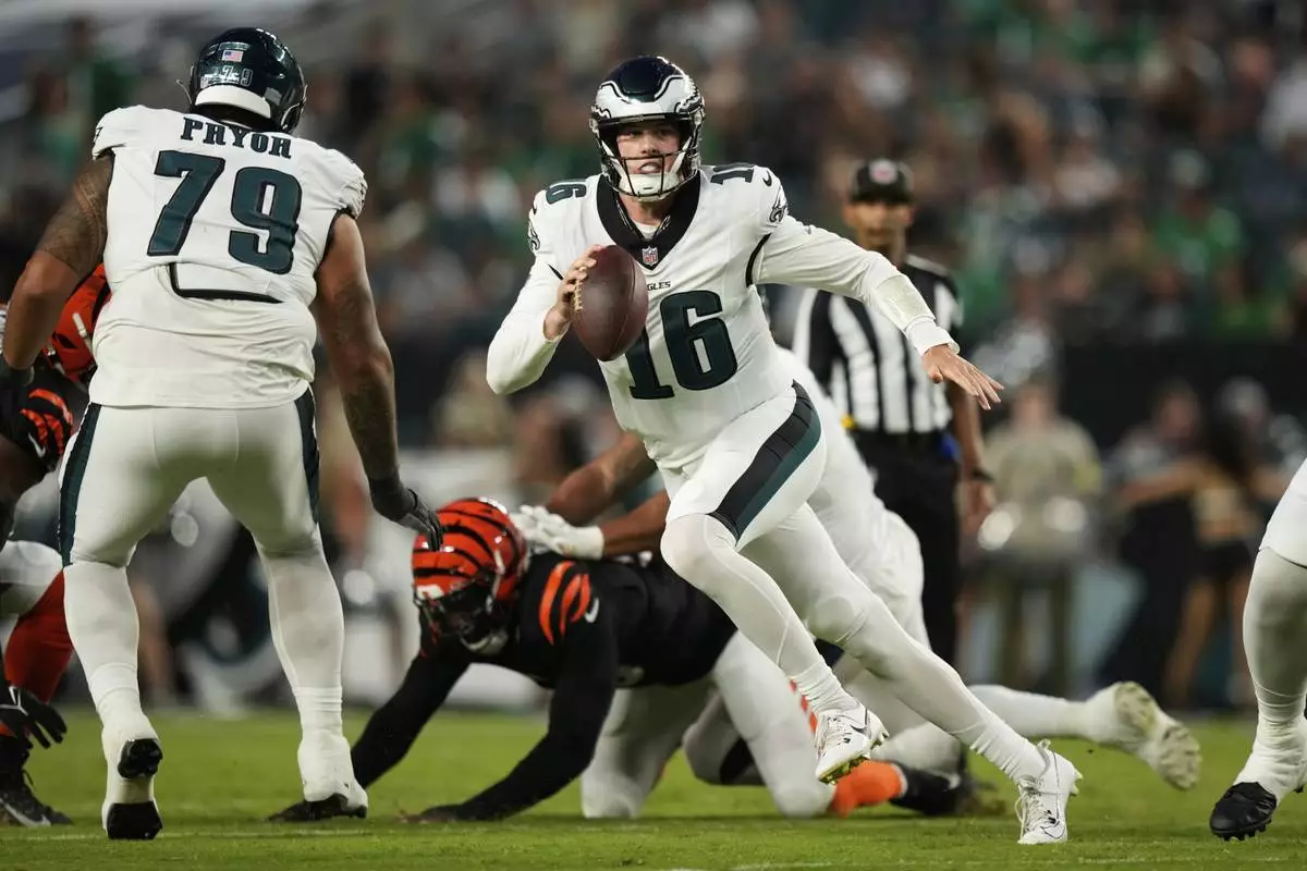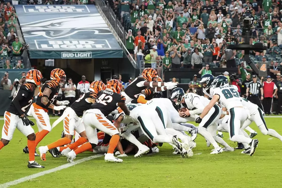 Without Hurts behind center, the Eagles used the contentious short-yardage play to success again, beating a potential ban in the offseason, then getting a helpful shove on quarterback Tanner McKee for a score to help Philadelphia beat the Cincinnati Bengals 34-27 on Thursday night in the preseason opener for both teams.