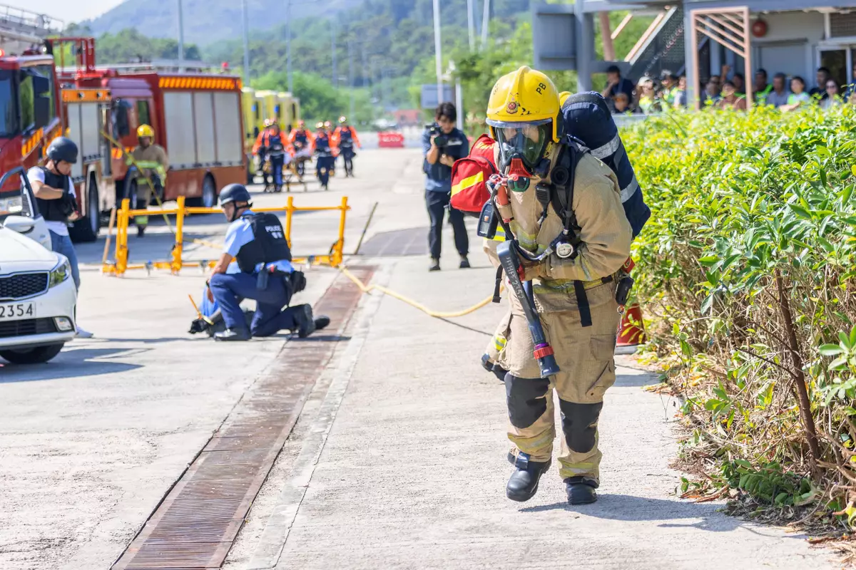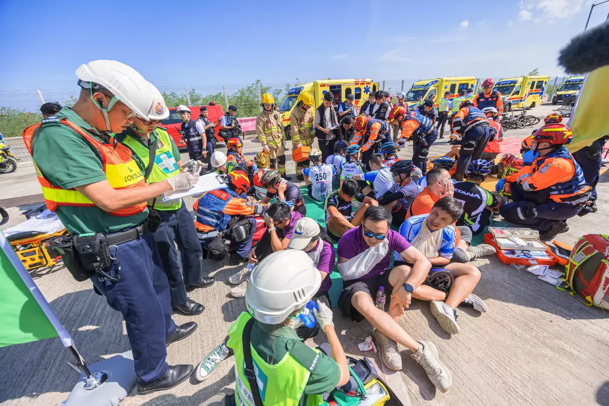 Over 300 representatives from 10 government departments and relevant organisations participated in the exercise, including personnel from the National Games Coordination Office (Hong Kong), the HKPF, the Department of Health, the Hospital Authority, the Fire Services Department, the Immigration Department, the Civil Aid Service, the Auxiliary Medical Service, the Cycling Association of Hong Kong, China Limited and the Hong Kong Association for Conflict and Catastrophe Medicine.