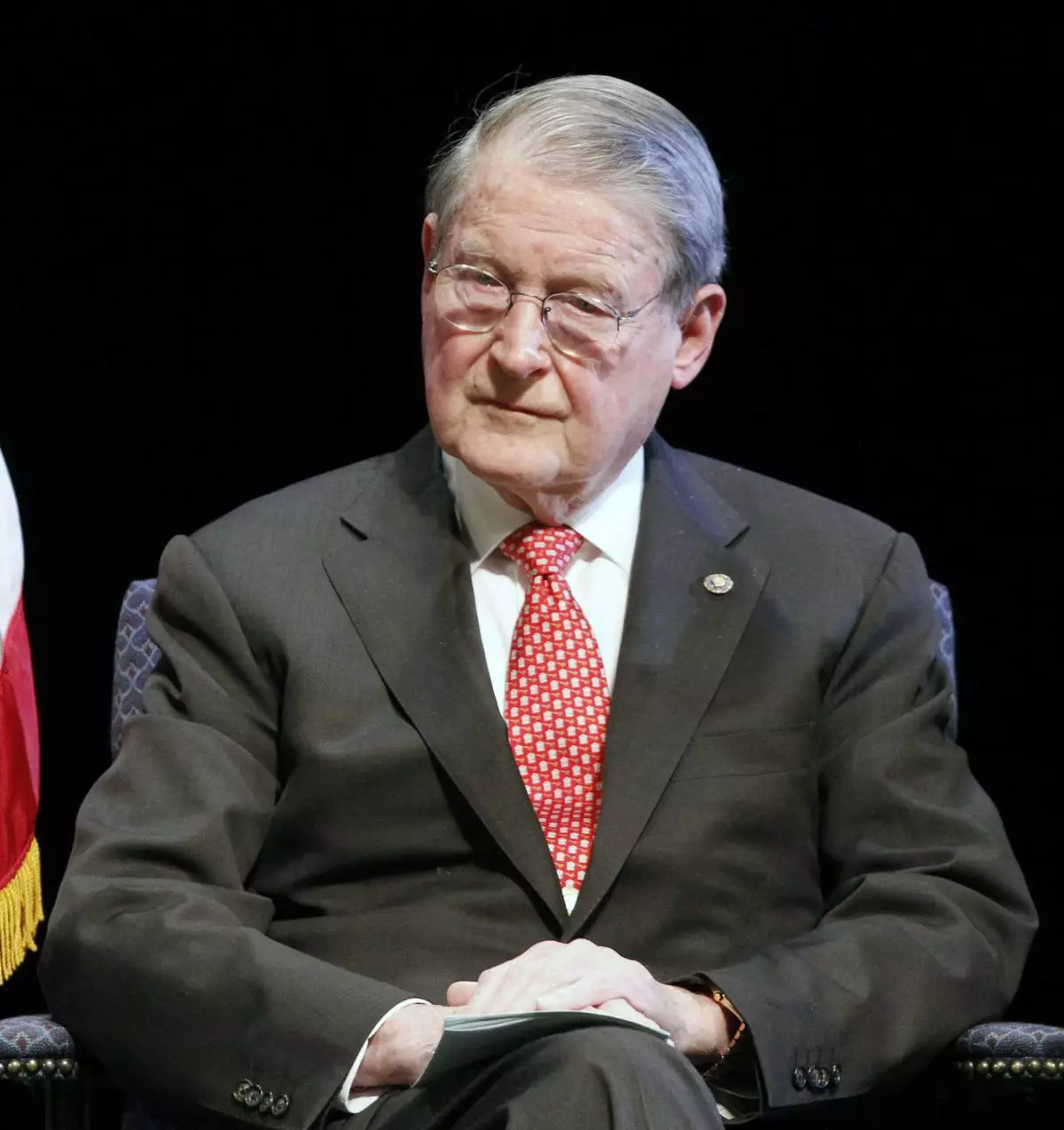 FILE - Former FBI Director William H. Webster looks on during the commemoration of the bloodiest events in the Bureau's history on the 25th anniversary of a Miami shootout in which two agents were killed, in North Miami Beach, Fla., April 11, 2011. (AP Photo/Alan Diaz, File)