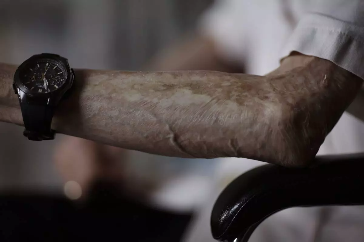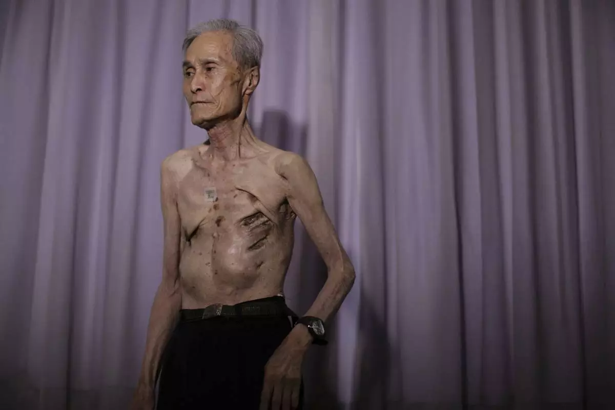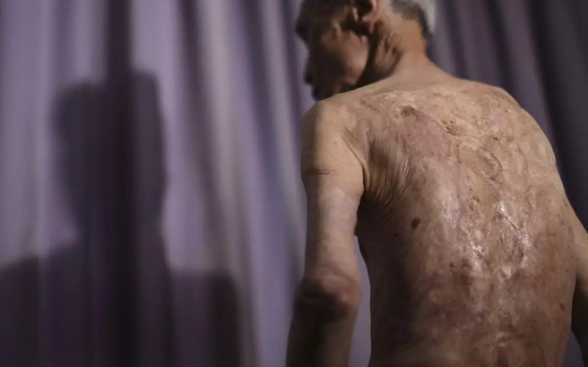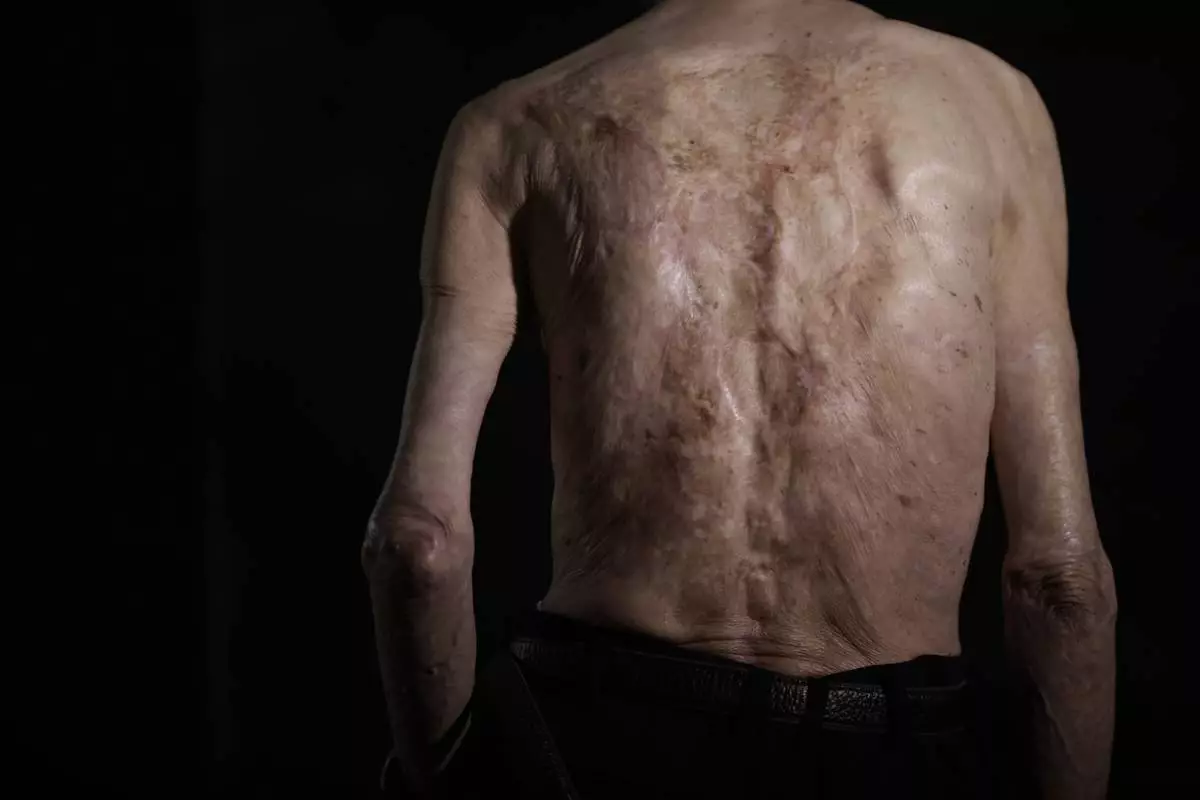For 70 years, he has lived with them, a web of wounds covering most of his back, and the remains of three ribs that half rotted away and permanently press against his lungs, making it hard to breathe. His wife still applies a moisturizing cream every morning to reduce irritation from the scars. Not a day goes by without pain.