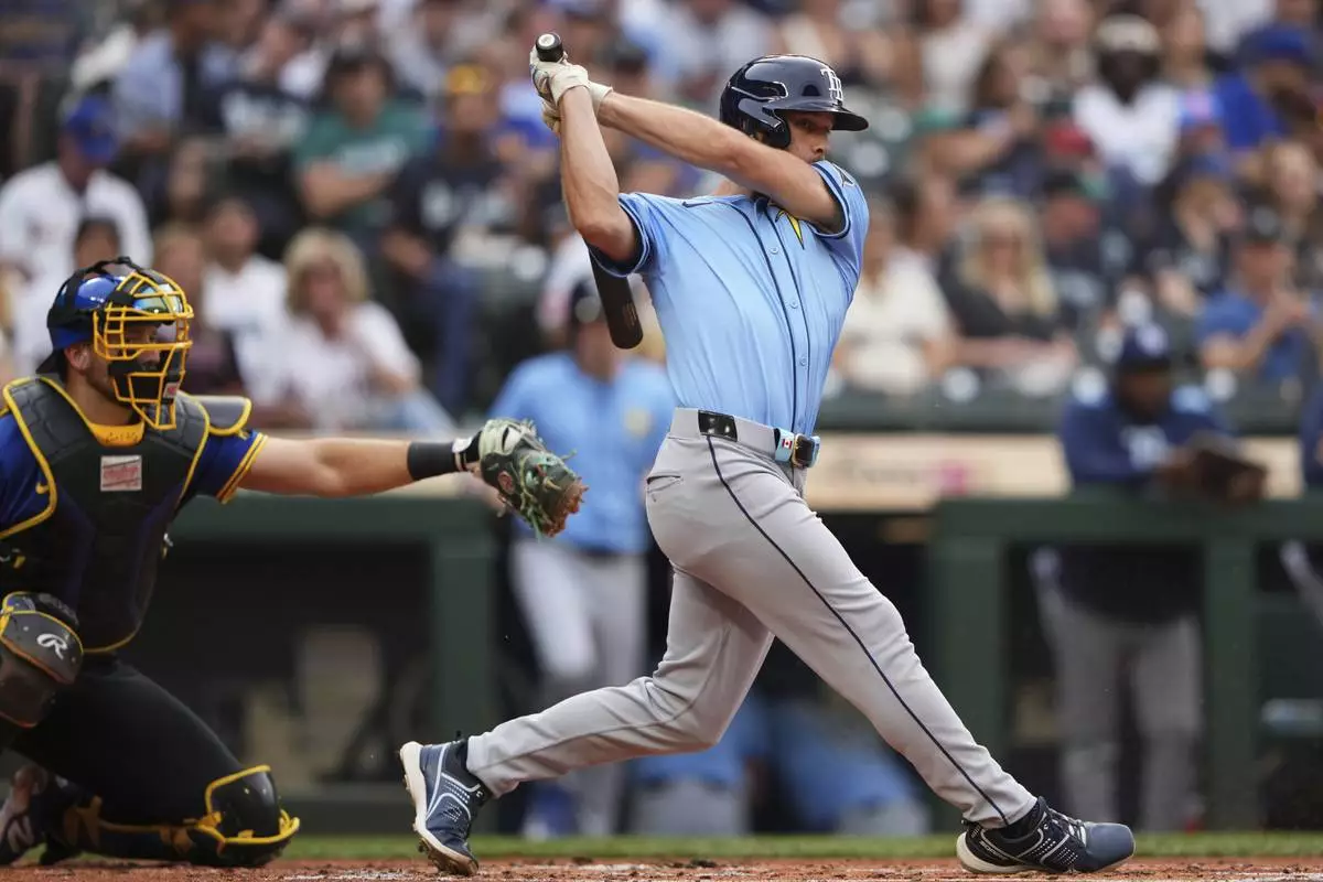 SEATTLE (AP) — Cal Raleigh hit his MLB-leading 43rd homer of the season, a go-ahead three-run shot in the eighth inning, giving the Seattle Mariners a 3-2 win over the Tampa Bay Rays on Friday night.