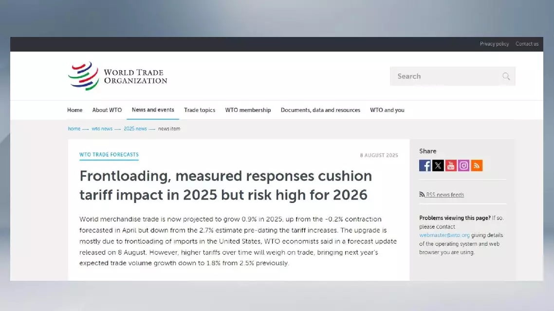 The WTO noted that the revised growth outlook is largely driven by frontloading of U.S. imports, but emphasized that the forecast remains well below the pre-tariff estimate of 2.7 percent.
