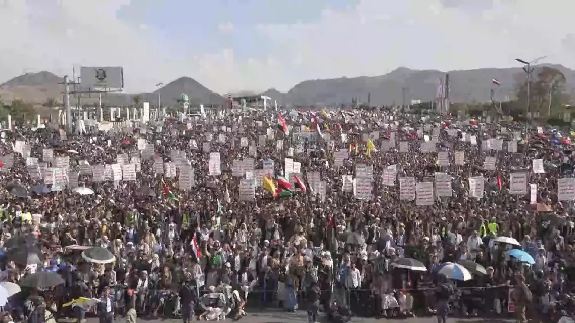 Yemen's Houthi group on Friday organized a large-scale protest in a public square, south of the capital Sanaa, strongly condemning the Israeli security cabinet's approval of a plan for the military to "take over Gaza City."