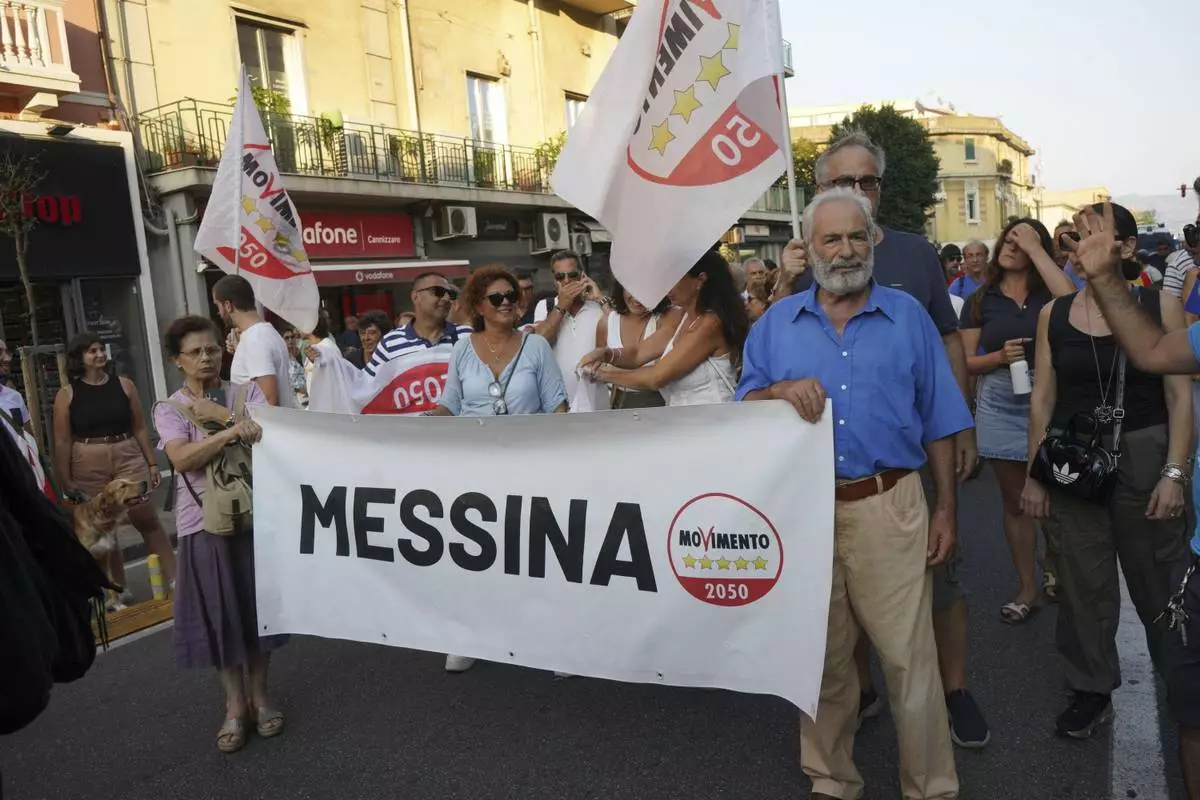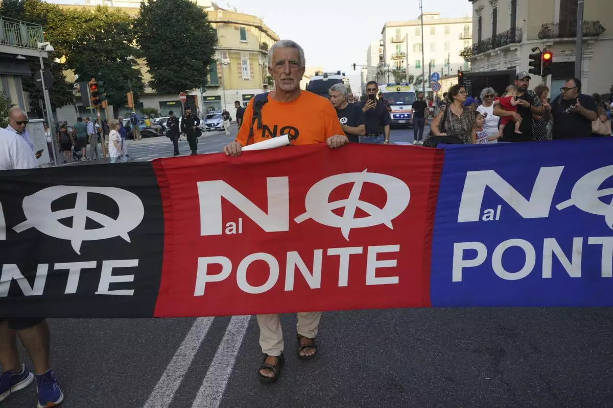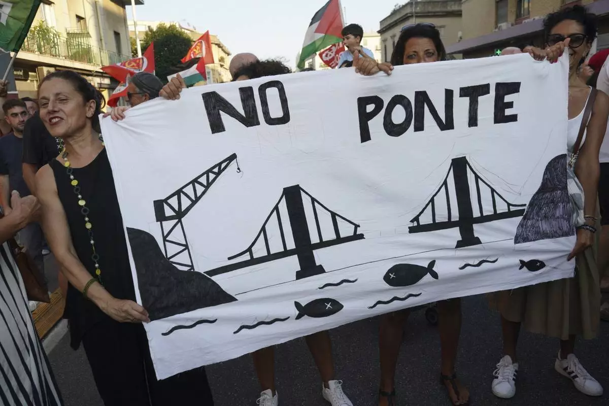 ROME (AP) — Thousands of people marched in the Sicilian city of Messina on Saturday to protest a government plan to build a bridge that would connect the Italian mainland with Sicily in a massive 13.5-billion-euro ($15.5 billion) infrastructure project.