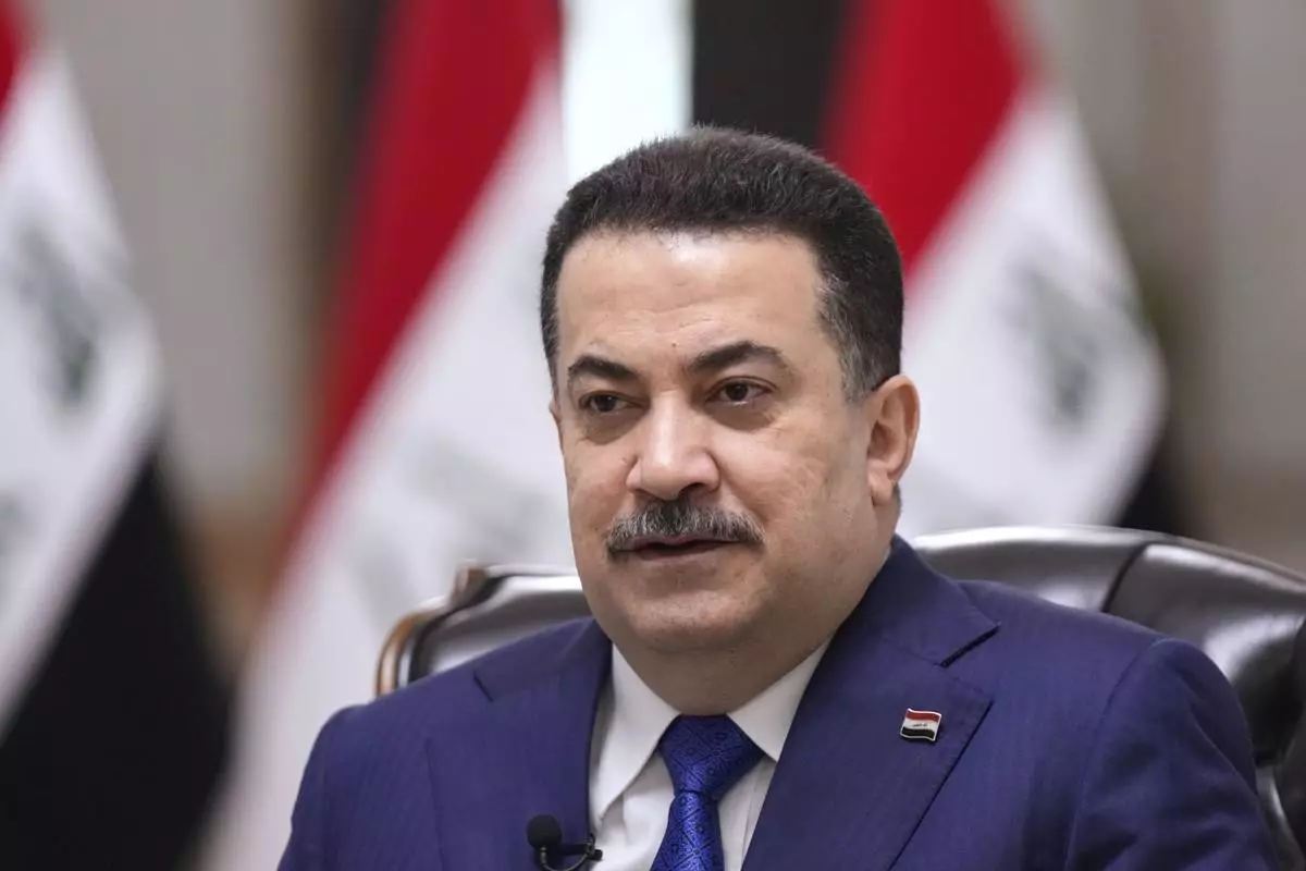 Iraq's Prime Minister Mohammed al-Sudani speaks during an interview with The Associated Press in Baghdad on Monday, July 28, 2025. (AP Photo/Hadi Mizban)