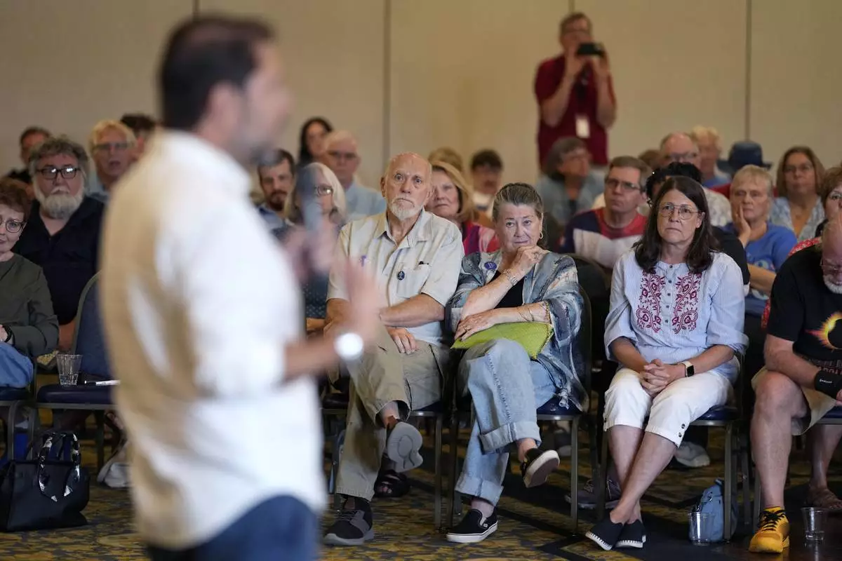 DAVENPORT, Iowa (AP) — Hundreds of people cheered Sen. Ruben Gallego at a town hall meeting in eastern Iowa Saturday as the first-term Arizona Democrat assailed the massive, Republican-backed tax bill signed by President Donald Trump as likely to make “America poorer and sicker.”