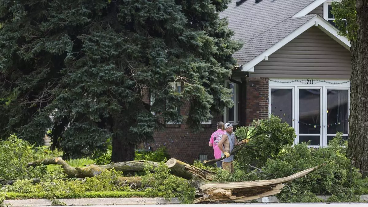 High winds caused widespread damage across eastern Nebraska, toppling trees, damaging roofs and pulling down electrical lines. About 20 miles (32 kilometers) north of Omaha in Blair, the roof of a warehouse was torn open by high winds. Thousands of people were left without power in the immediate aftermath.