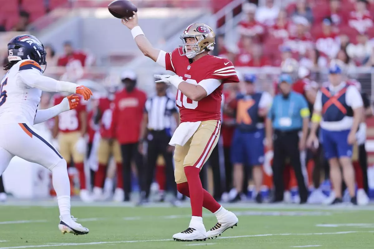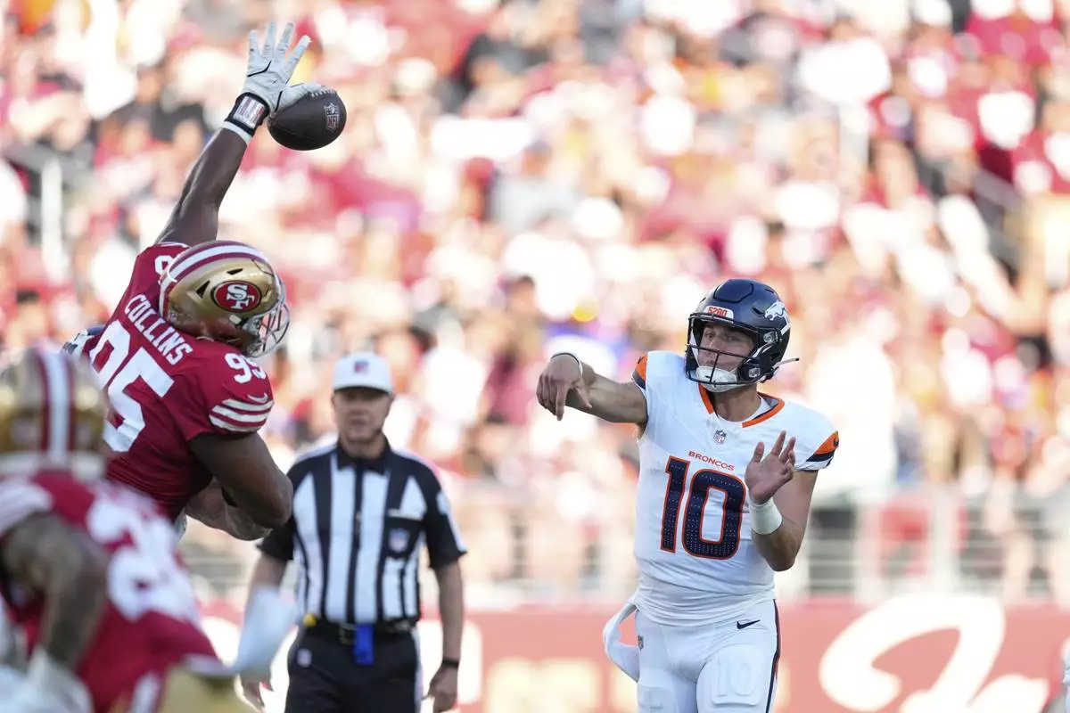 SANTA CLARA, Calif. (AP) — Jarrett Stidham threw two TD passes following a lackluster performance from Bo Nix and Denver's starters, and the Broncos beat the San Francisco 49ers 30-9 in the preseason opener Saturday night.