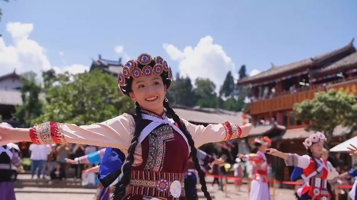 In Lijiang ancient town, one of the city's landmark tourist attractions, an ongoing "ethnic culture season" offers visitors immersive new experiences. People from different ethnic groups dressed in traditional attire parade through the ancient streets with bamboo baskets filled with flowers, while flash mob dances and other activities enable tourists to appreciate both the stunning landscapes and the beauty of ethnic culture.