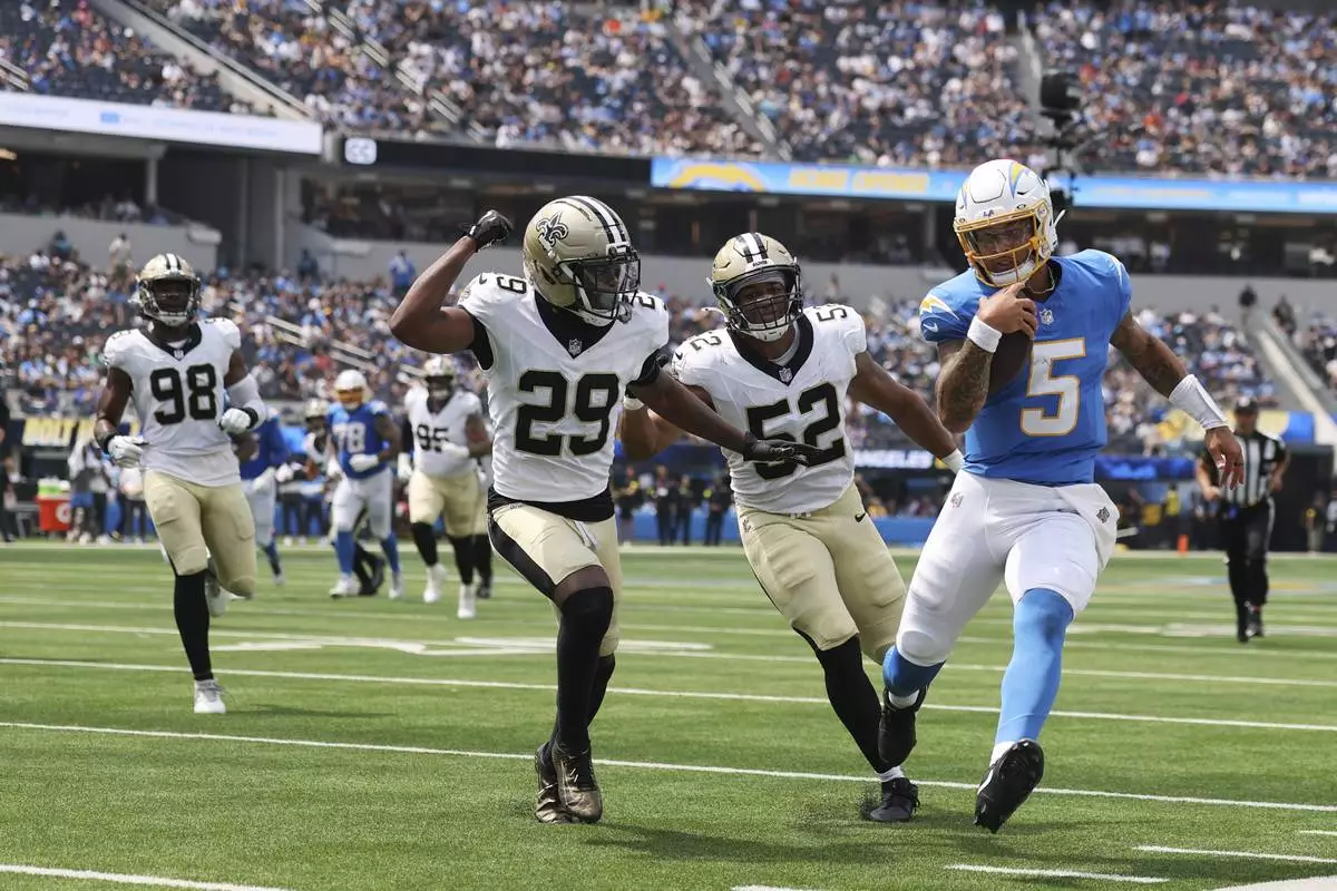 INGLEWOOD, Calif. (AP) — Trey Lance scrambled for a 5-yard score and rookie Eric Rogers had a 43-yard pick-6 in a mostly sluggish offensive performance by the Los Angeles Chargers in a 27-13 exhibition win over the New Orleans Saints on Sunday.