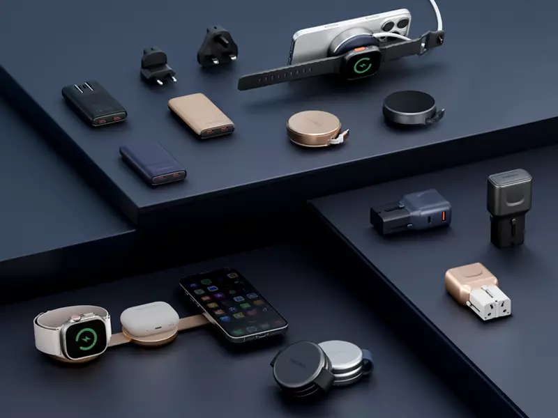 Next up is TravelGo Adapter 45: a pocket-friendly, powerful travel adapter designed to charge power-intensive devices like MacBook Air and tablets. Its secure pin-lock system prevents pins from sliding back, improving electrical contact and safety, while dual USB-C ports (25W and 20W) enable dual devices to be charged simultaneously. Intelligent power identification adjusts the charging current for each device to ensure safe, synchronous charging.