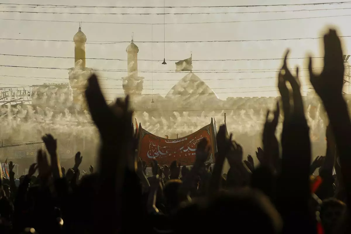 Shiite pilgrims participate in Arbaeen, which marks the end of the 40-day mourning period following Ashoura, in Karbala, Iraq, Thursday, Aug. 14, 2025. (AP Photo/Anmar Khalil)