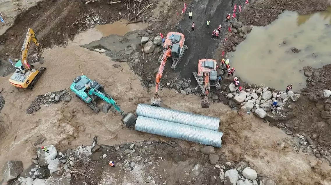 After nearly 200 technicians were mobilized to carry out round-the-clock repairs, the last flood-damaged blockage in the Xinglongshan Village section of provincial highway S104 was cleared on Sunday, allowing the entire route to reopen in both directions.