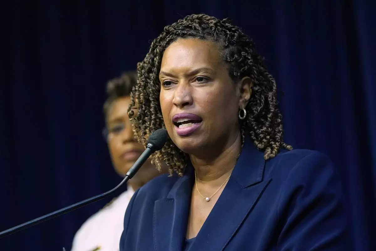 Washington Mayor Muriel Bowser speaks during a news conference on President Donald Trump's plan to place Washington police under federal control and deploy National guard troops to Washington, Monday, Aug. 11, 2025, in Washington. (AP Photo/Julia Demaree Nikhinson)