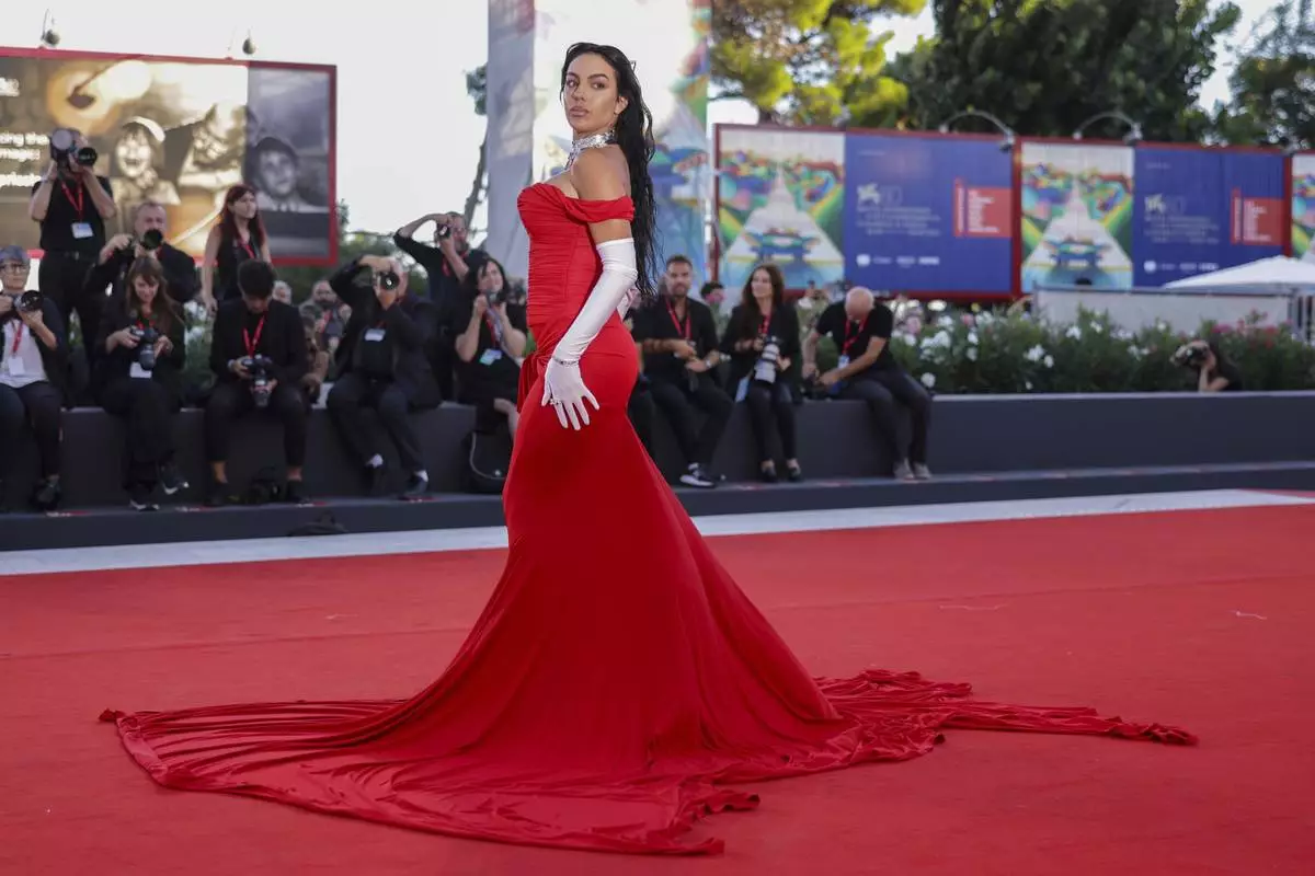 FILE - Georgina Rodriguez poses for photographers upon arrival for the premiere of the film 'Queer' during the 81st edition of the Venice Film Festival in Venice, Italy, on Tuesday, Sept. 3, 2024. (Photo by Vianney Le Caer/Invision/AP, File)