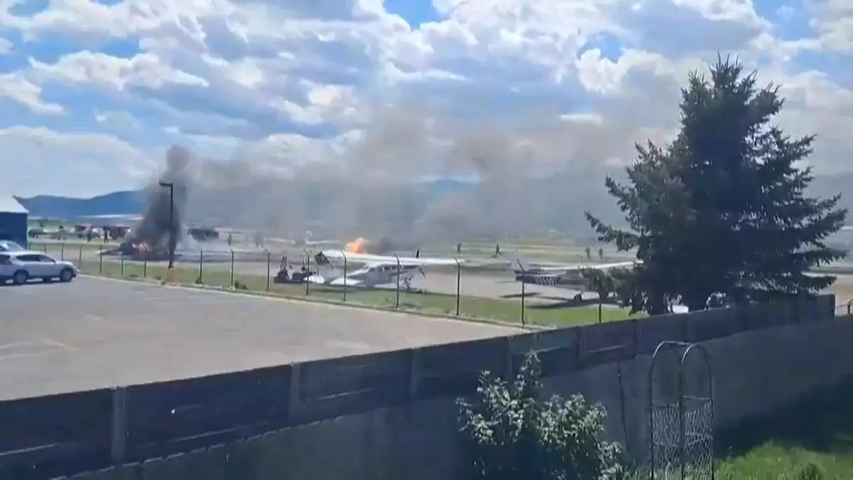 Witnesses said a plane crash-landed at the end of the runway and careened into another aircraft, Kalispell Fire Chief Jay Hagen said.