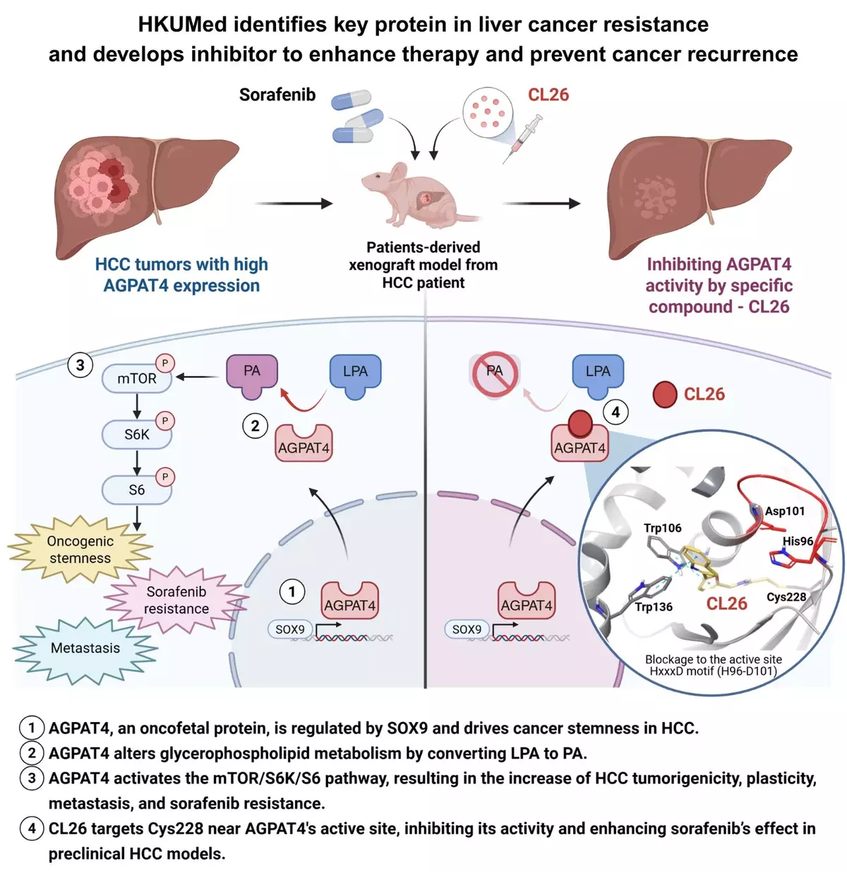 ‘Our research suggests that AGPAT4 helps HCC cancer cells become more adaptable and resistant to therapy,’ said Professor Ma. ‘By targeting this protein, we may enhance the effectiveness of sorafenib and expand the therapeutic options for patients in clinical settings. We aim to offer hope to countless patients battling this challenging disease.’Professor Chung added, ‘CL26’s ability to precisely target AGPAT4 is likely one of the key reasons it works so well. We are conducting larger-scale preclinical studies to further assess the efficacy and safety of CL26 and hope to advance to investigational new drug studies and clinical trials.’