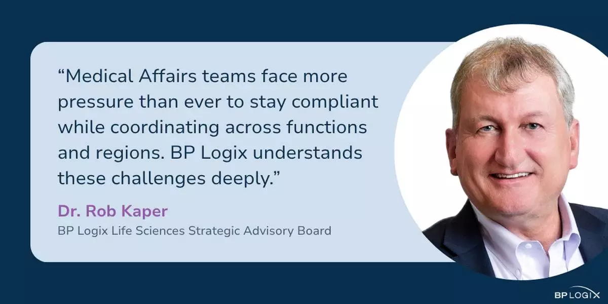 "Medical Affairs teams face more pressure than ever to stay compliant while coordinating across functions and regions. BP Logix understands these challenges deeply." - Rob Kaper, BP Logix Life Sciences Strategic Advisory Board