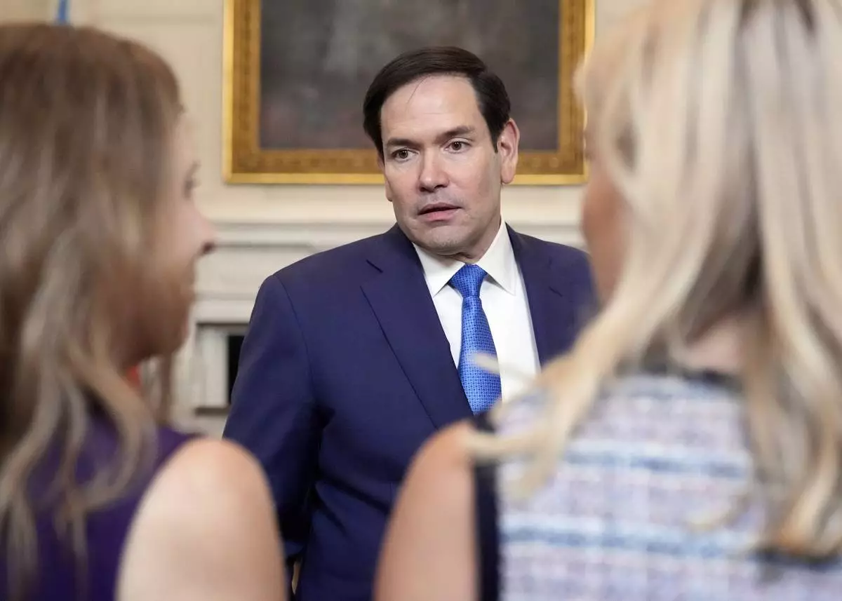 Secretary of State Marco Rubio arrives before a trilateral signing with Azerbaijan's President Ilham Aliyev and Armenia's Prime Minister Nikol Pashinyan in the State Dining Room of the White House, Friday, Aug. 8, 2025, in Washington. (AP Photo/Mark Schiefelbein)