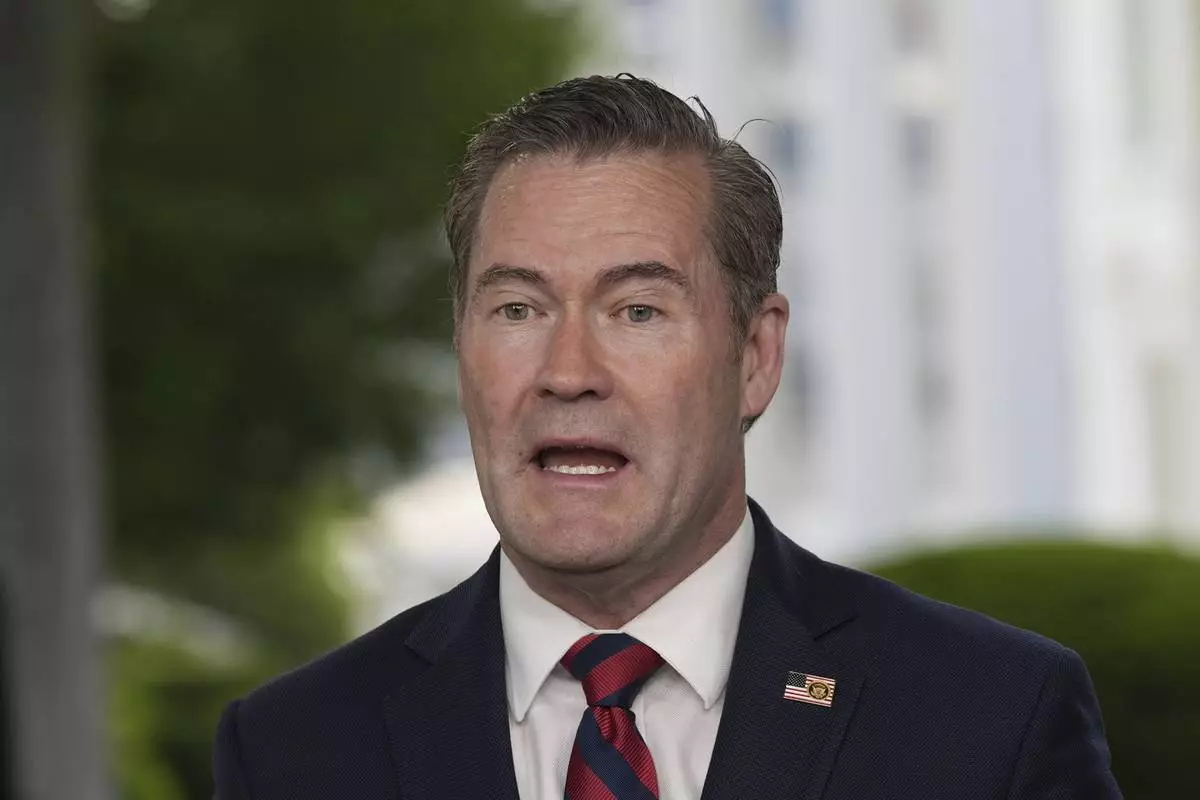FILE - National security adviser Mike Waltz speaks during a television interview at the White House, May 1, 2025, in Washington. (AP Photo/Alex Brandon, File)