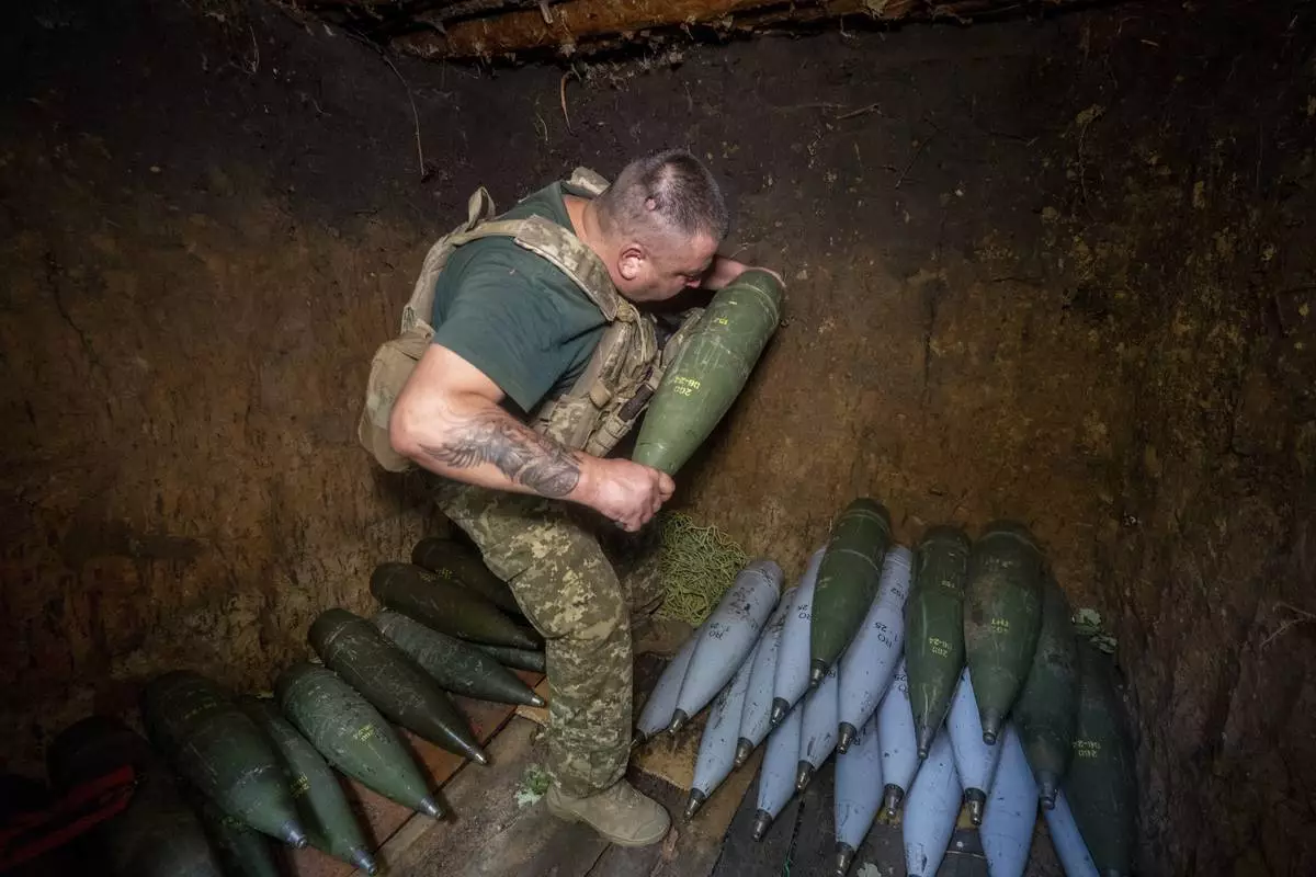 A soldier of Ukraine's 30th Mechanized Brigade prepares to fire a howitzer towards Russian positions on the front line near near Kharkiv, Ukraine, Wednesday, Aug. 13, 2025. (AP Photo/Andrii Marienko)