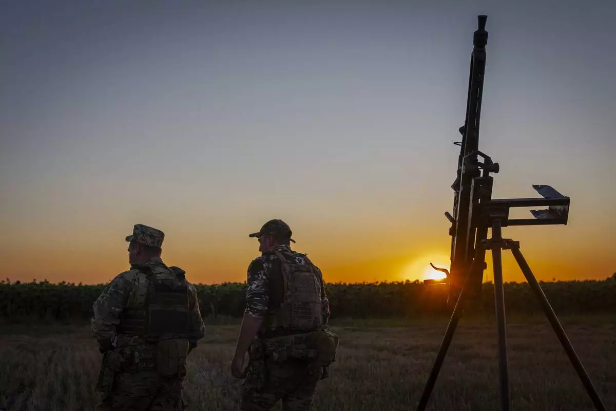 Ukrainian servicemen of the 15th Army Corps stand by an armed pickup truck during night duty in the Chernihiv region, Ukraine, late Tuesday, Aug. 12, 2025. (AP Photo/Dan Bashakov)