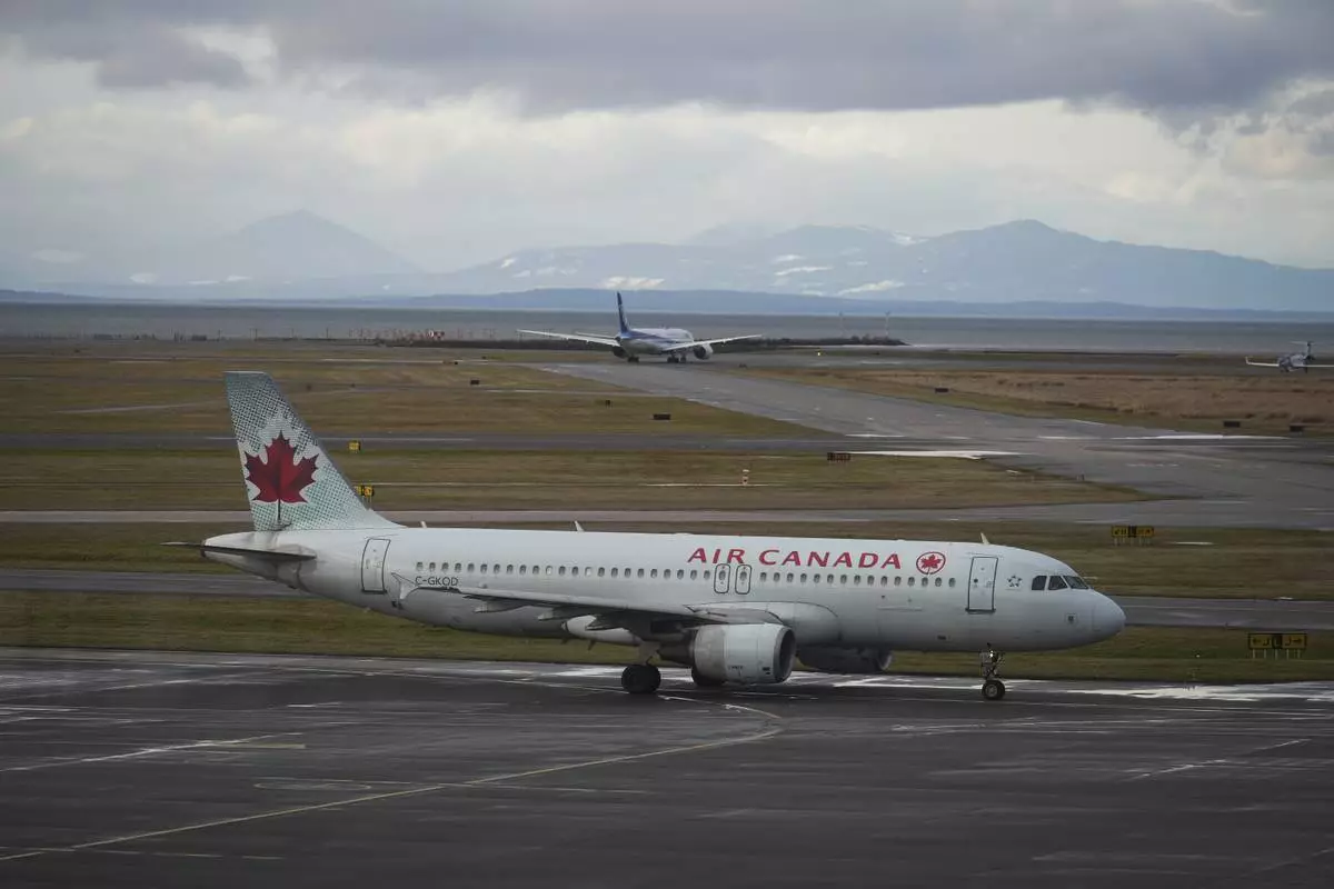 FILE - An Air Canada aircraft taxis at Vancouver International Airport after operations returned to normal after last week's snowstorm, in Richmond, British Columbia, on Monday, Dec. 26, 2022. (Darryl Dyck/The Canadian Press via AP, File
